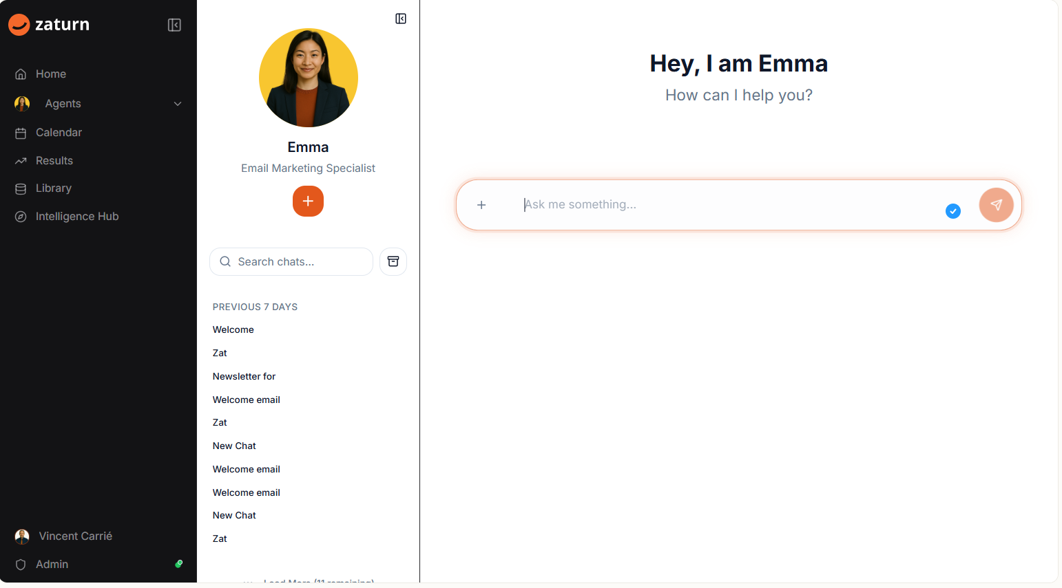 If you haven't done so already, head to the Intelligence Hub and connect your email platform. Emma works with Brevo, Mailchimp, Outlook, and Gmail. This lets her send emails directly on your behalf. It only takes a minute but will save you countless hours.
