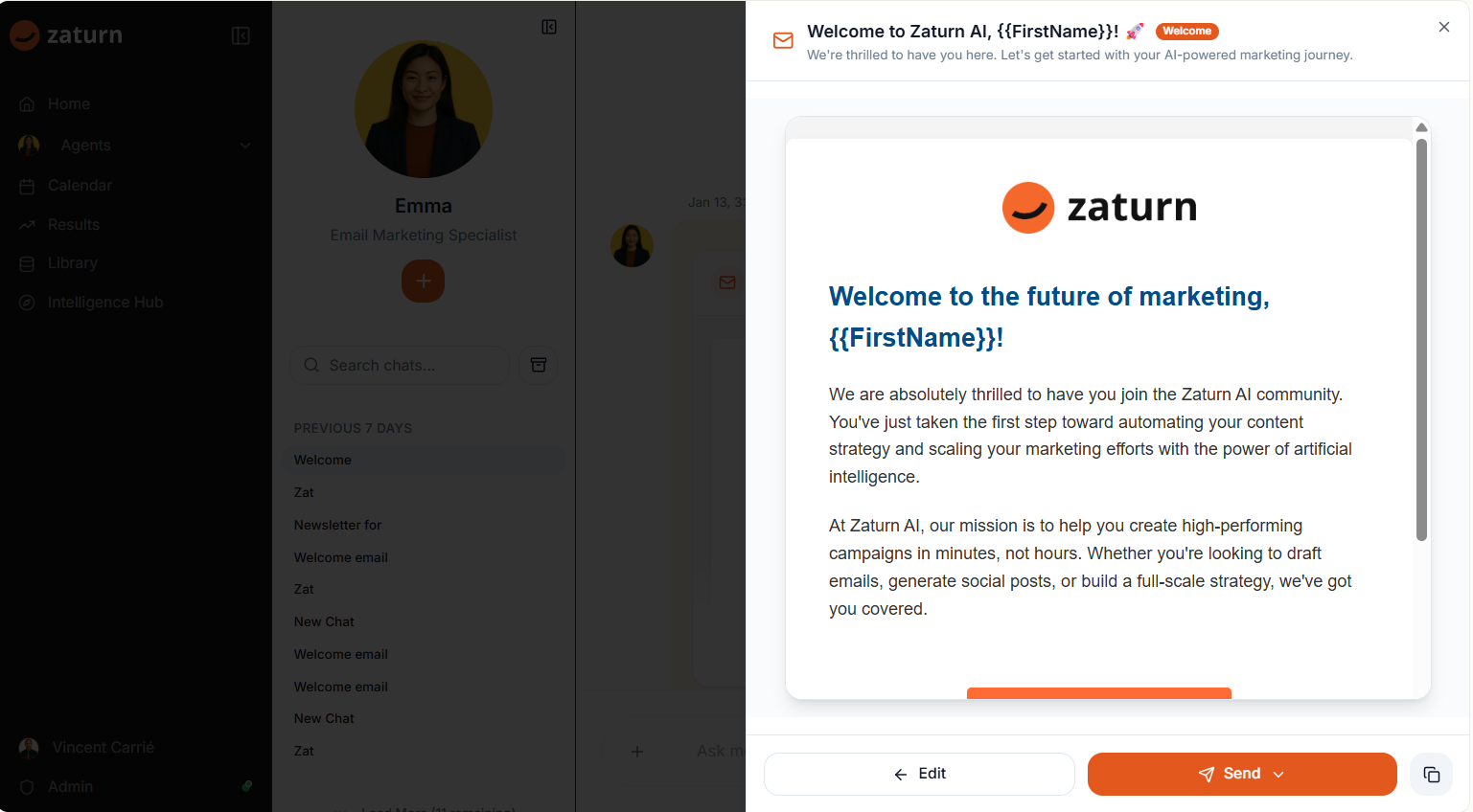 "Create a sample easy email for welcome to zaturn.ai use our logo"