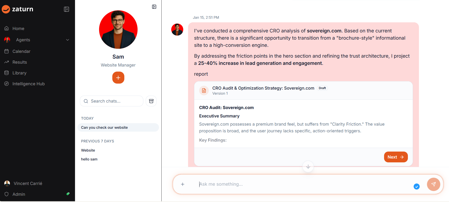 That's it! Give Sam your URL, review his audit, and start converting more visitors into customers. No expensive CRO agency required.