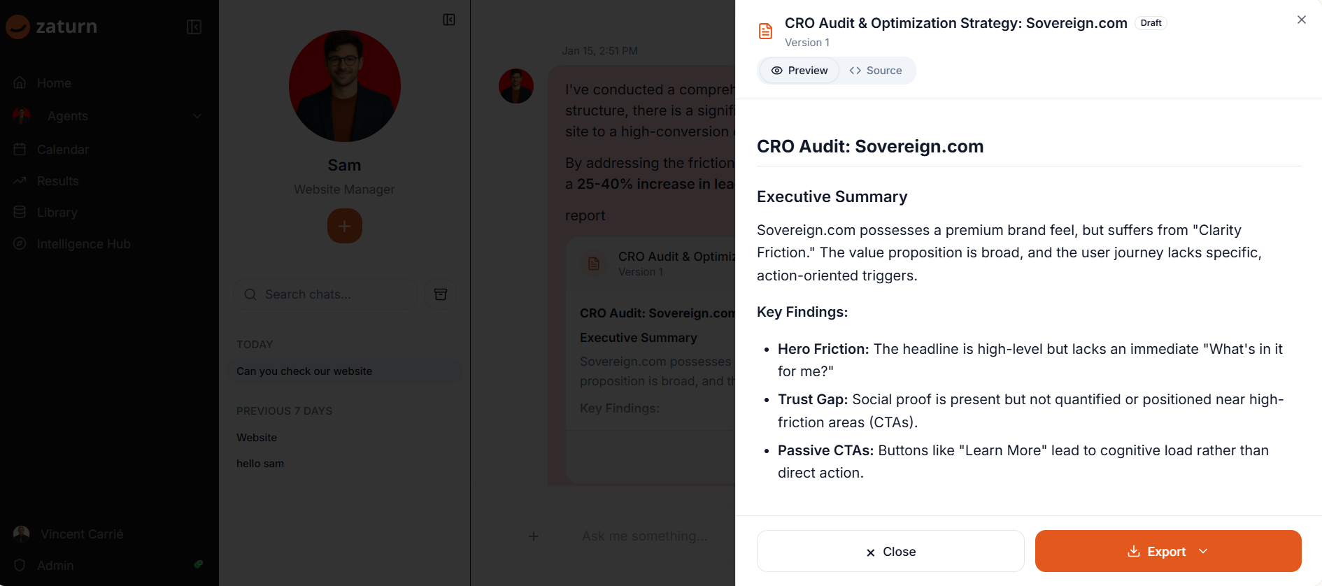 Sam performs a comprehensive CRO (Conversion Rate Optimization) analysis of your website. He doesn't just give you vague feedback. He digs into the structure, the messaging, and the user journey to find exactly where you're losing potential customers.