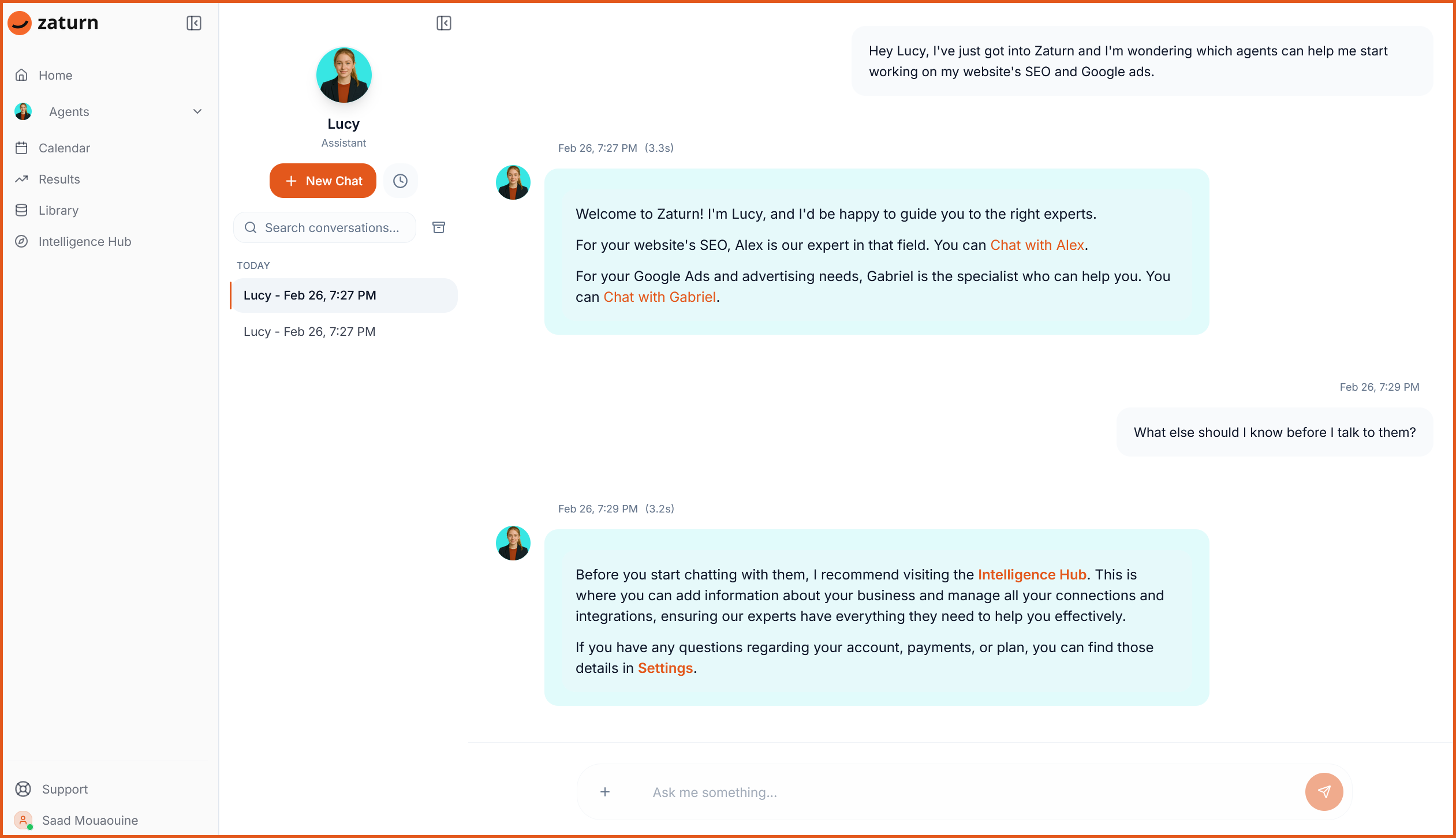 For new Zaturn users especially, she’s the fastest way to get oriented and start getting value from the platform.